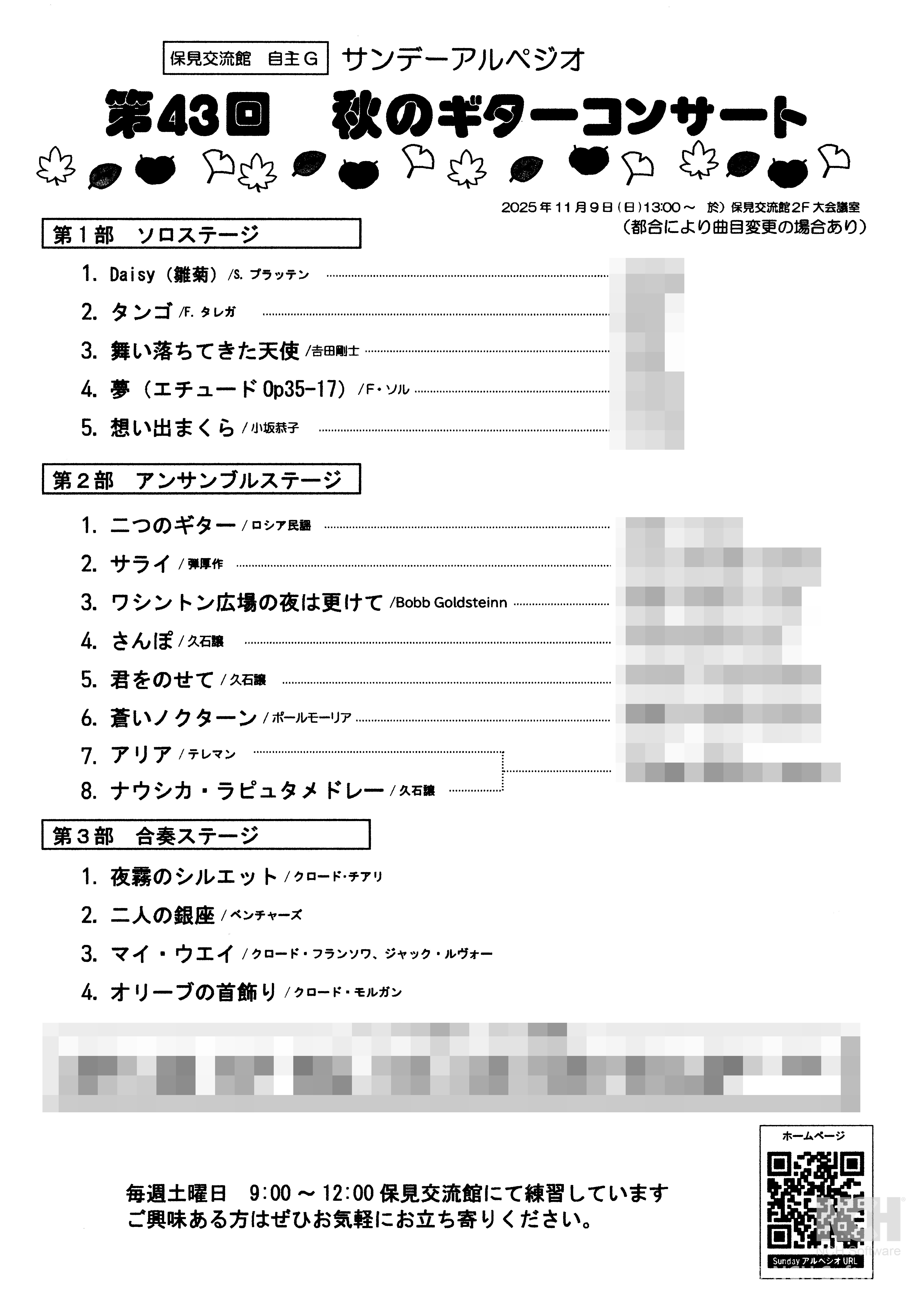 1)定期演奏会(2回目)・・・秋のギターコンサート